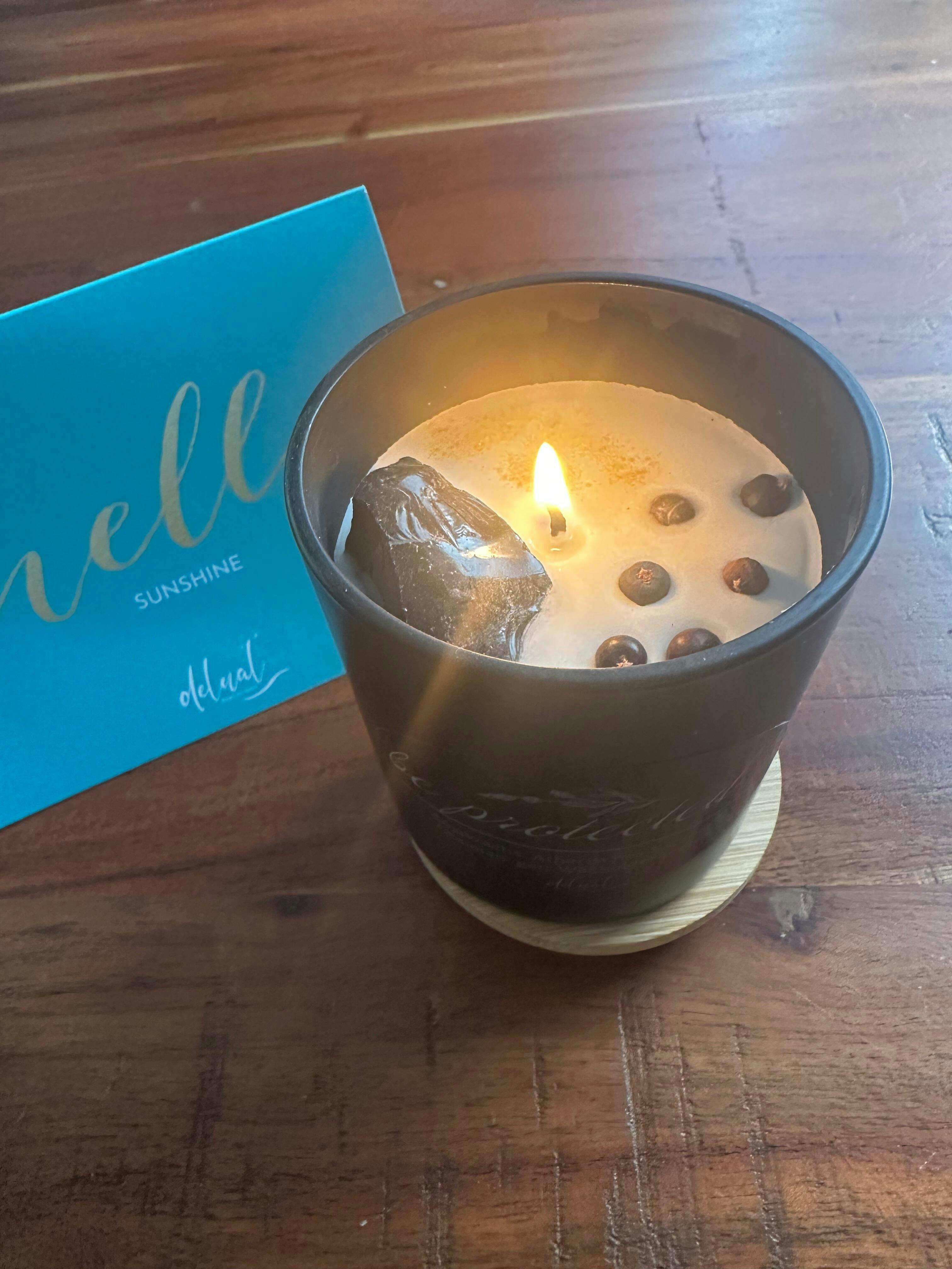 Diese Kerze ist mehr als nur ein Duftspender – sie ist ein Symbol für Schutz und Selbstentfaltung. Lass den Alltag hinter dir und tauche ein in eine Welt voller Aromen und positiver Energie.